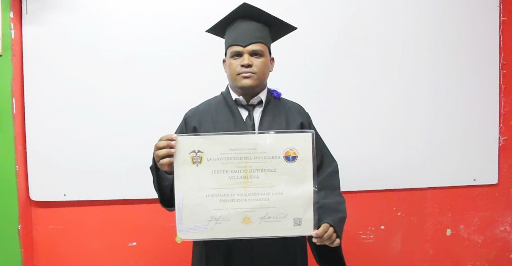 Se trata de Jerfer Emilio Gutiérrez Villanueva, quien cursó sus estudios profesionales en la Universidad del Magdalena desde el año 2009 hasta el año 2014 y no alcanzó a presentar modalidad de grado en ese entonces porque posteriormente quedó privado de la libertad.