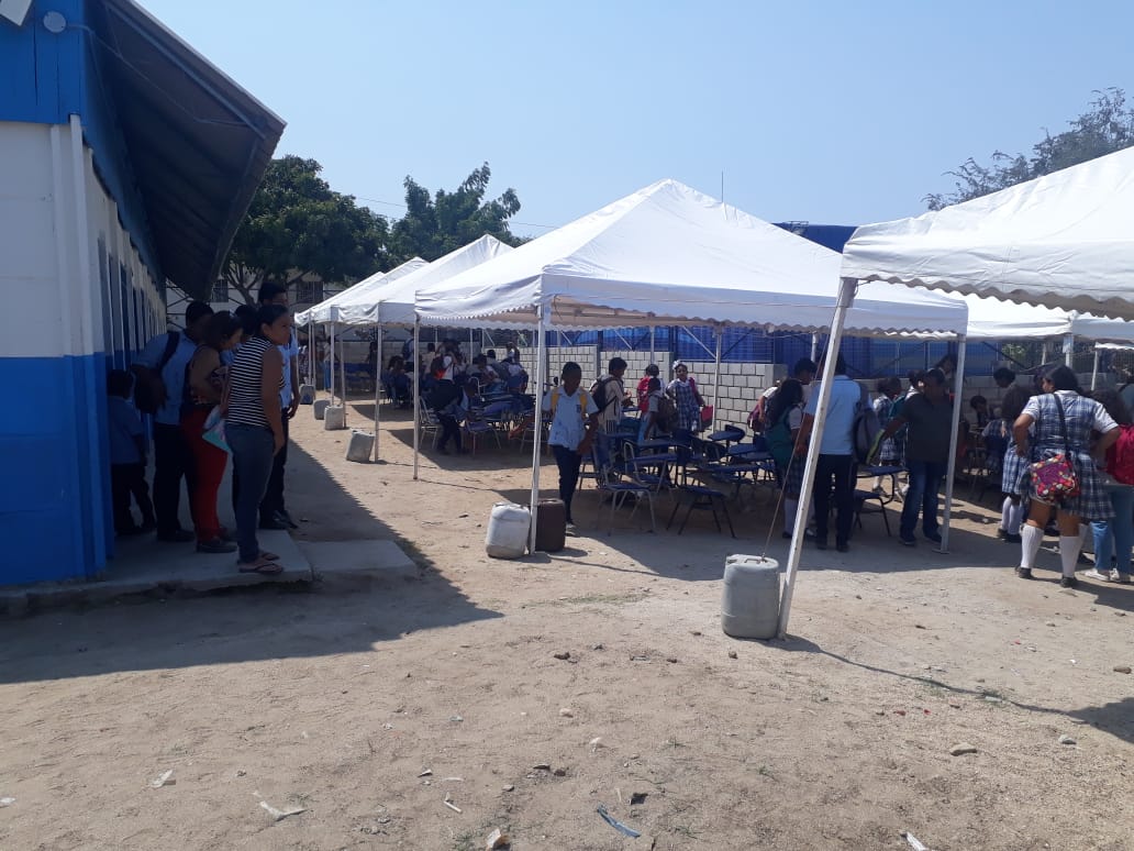 “Estamos sin tableros, la brisa y el polvo nos fastidia y sentimos mucho calor por las carpas que están muy calientes. Estamos a la intemperie”, expresó Angie Mora, estudiante de undécimo grado.