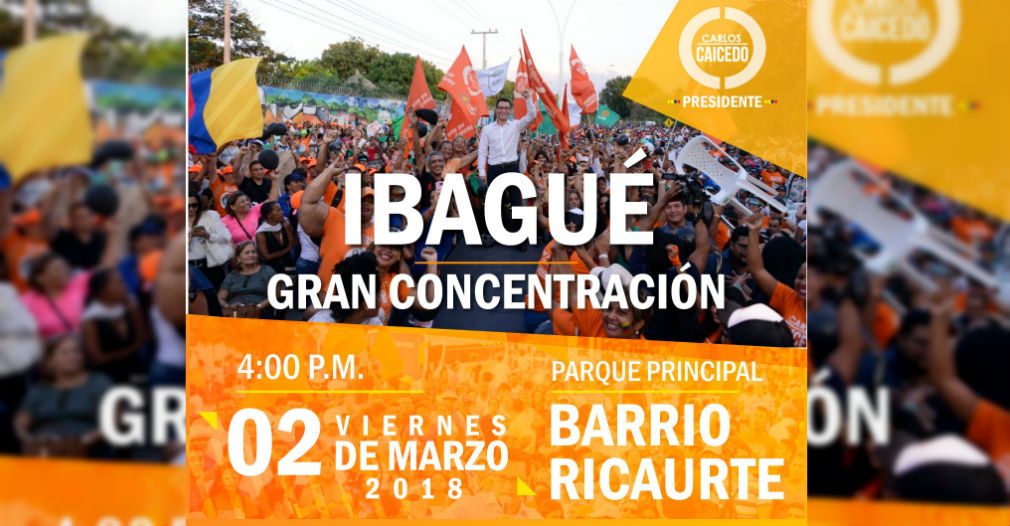 El candidato presidencial Carlos Caicedo, con el propósito de continuar dando a conocer sus propuestas para cambiar a Colombia, estará hoy viernes 2 de marzo cumpliendo compromisos en las ciudades de Neiva e Ibagué.