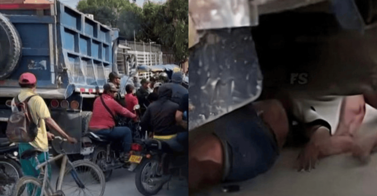 En ese punto, fueron impactadas por un vehículo de carga tipo volteo. La colisión fue de tal magnitud que ambas mujeres y la motocicleta quedaron atrapadas debajo del pesado automotor.