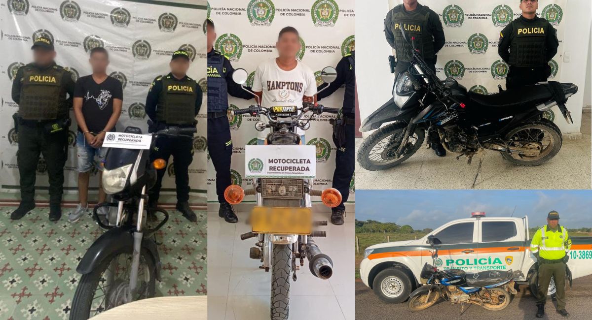 En un trabajo conjunto en los municipios de Zona Bananera, Nueva Granada, El Difícil, Fundación, San Sebastián de Buenavista, Aracataca y en la vía que comunica al municipio de El Banco con Chimichagua, se ha obtenido éxito en la recuperación de motocicletas que presentaban requerimientos judiciales por hurto.