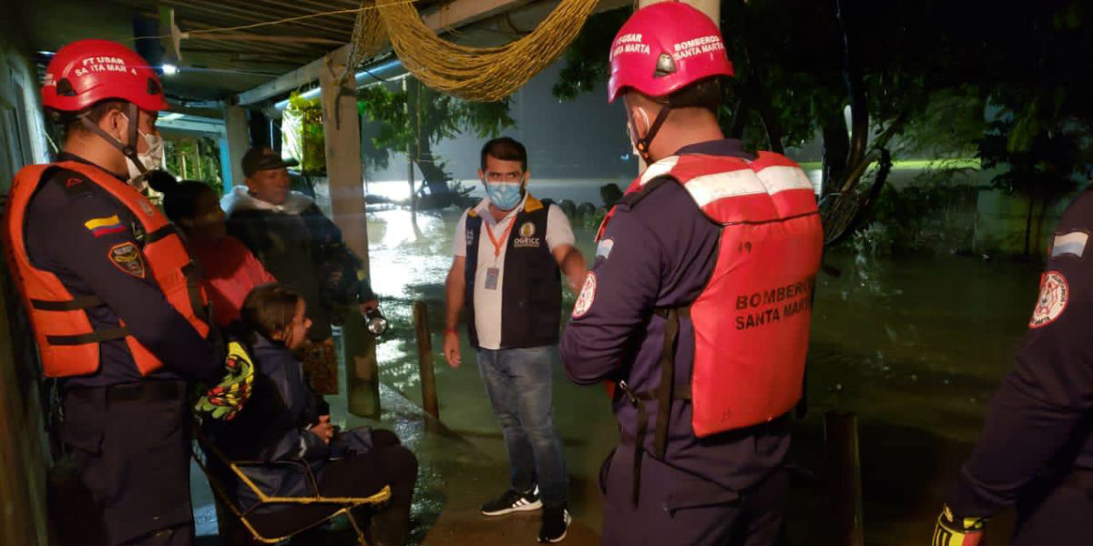 “Nos trasladamos al corregimiento de Guachaca, donde nuevamente por las fuertes precipitaciones en la parte alta de la Sierra Nevada de Santa Marta se ha desbordado el río. Esta vez la creciente fue lenta, lo cual permitió que el grupo de voluntarios Cobasa avisara oportunamente a las familias para que levantaran sus enseres y evacuaran las viviendas”, indicó Jorge Lizarazo, jefe de la Oficina de Gestión del Riesgo y Cambio Climático (Ogricc) en el Distrito, quien explicó además que el nivel del río Guachaca fue bajando de manera rápida y las familias pudieron retornar a sus viviendas.