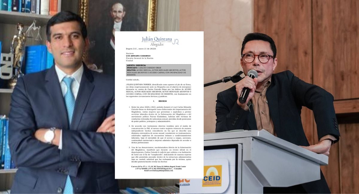 Ante estos hechos, el abogado Julián Quintana, anunció que denunció ante la Fiscalía General de la Nación al exgobernador Caicedo, por presunto acoso y abuso sexual.