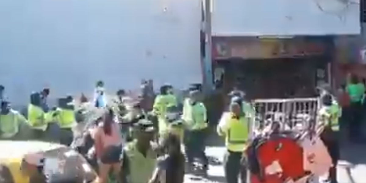 Por su parte, una comerciante dijo que “un policía me dobló el brazo y uno de espacio público me pegó una trompá en toda la cara”.