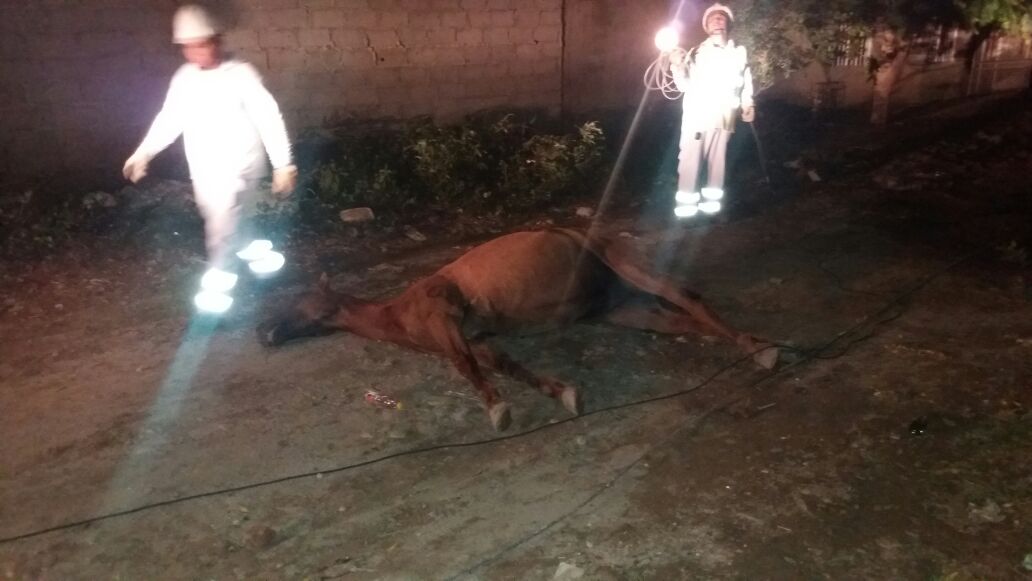 Yegua murió electrocutada al pisar un cable de alta tensión en el barrio Santana