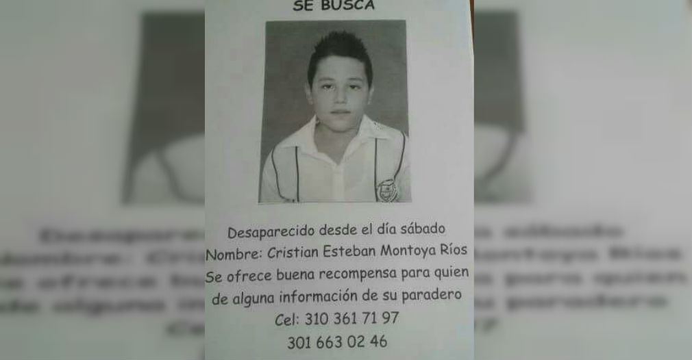 Cristian es monaguillo de la Iglesia Católica en El Banco, estudiante de la Institución Lorencita Villegas de Santos. La noticia fue confirmada por mandos de la Policía, la Alcaldesa Mariza Pérez de Chimichagua y Andrés Montoya padre del niño desaparecido