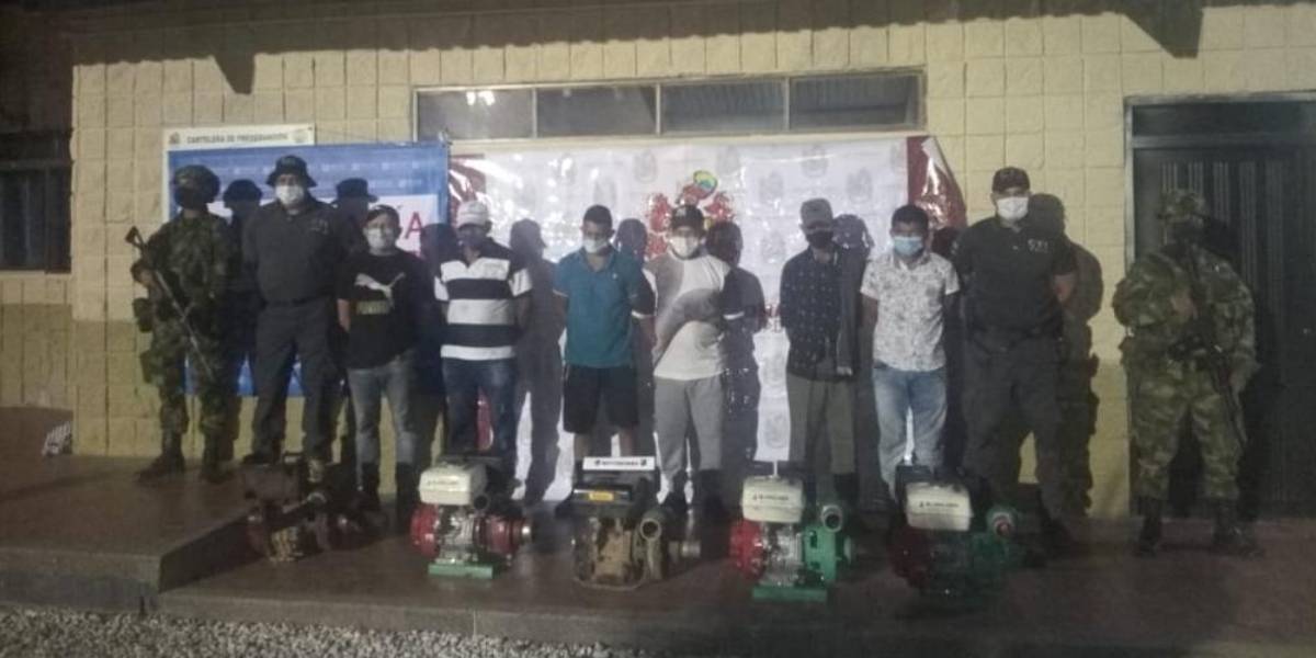 Durante la operación se desplegó una aeronave de la Fuerza Aérea Colombiana y personal en superficie del Ejército Nacional y la Policía Nacional, logrando la aprehensión de los cinco sujetos en flagrancia, así como la incautación de cinco motobombas que eran utilizadas para esta actividad económica ilícita.