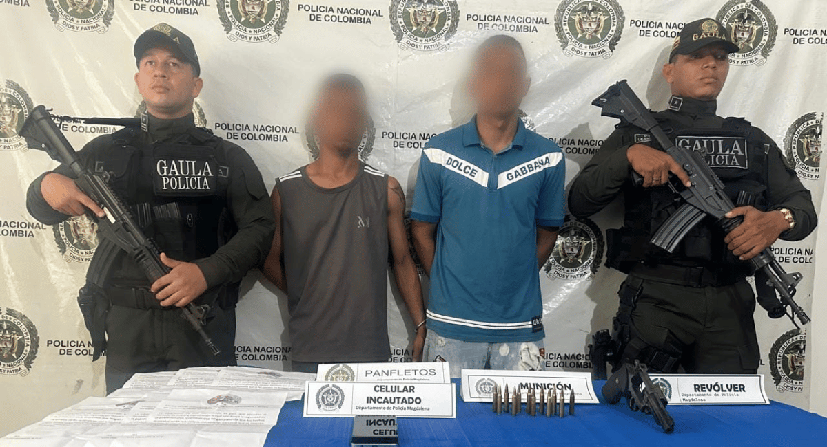 Durante el procedimiento, las autoridades incautaron un revólver, munición, panfletos con mensajes intimidatorios y un teléfono celular. Así lo informó el coronel Javier Alberto Duarte Reyes, comandante del Departamento de Policía Magdalena.
