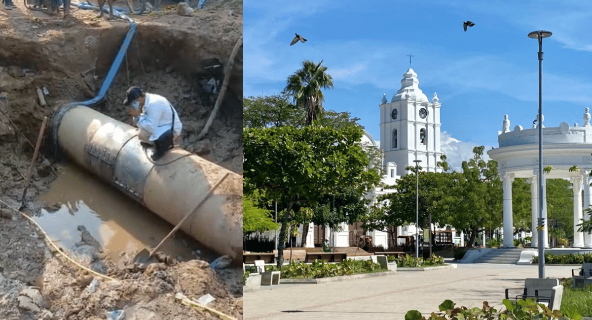 Durante los trabajos realizados el sábado 16 de marzo, el contratista dañó un tubo de 900 milímetros que abastece tanto a Ciénaga como a Pueblo Viejo, generando problemas en algunas viviendas del barrio