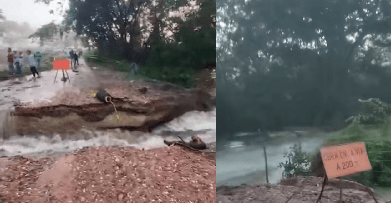 La vía, considerada un acceso importante para el municipio, se partió en dos partes debido a la fuerza erosiva del agua, causada por las fuertes lluvias recientes.