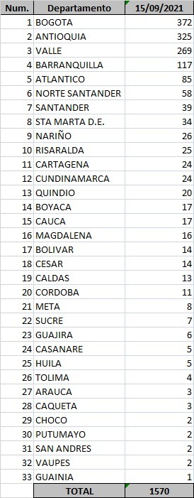 Colombia reportó este miércoles 1.570 casos nuevos de coronavirus, tras procesarse 45.720 pruebas; asimismo, se reportaron 40 fallecimientos.