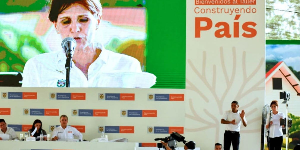 Rosa Cotes se refirió a los indígenas porque en el comienzo del taller el presidente Iván Duque informó que el Gobierno llegó a un acuerdo para desbloquear la Vía Panamericana que durante cerca de 27 días estuvo cerrada y fue escenario de protestas.