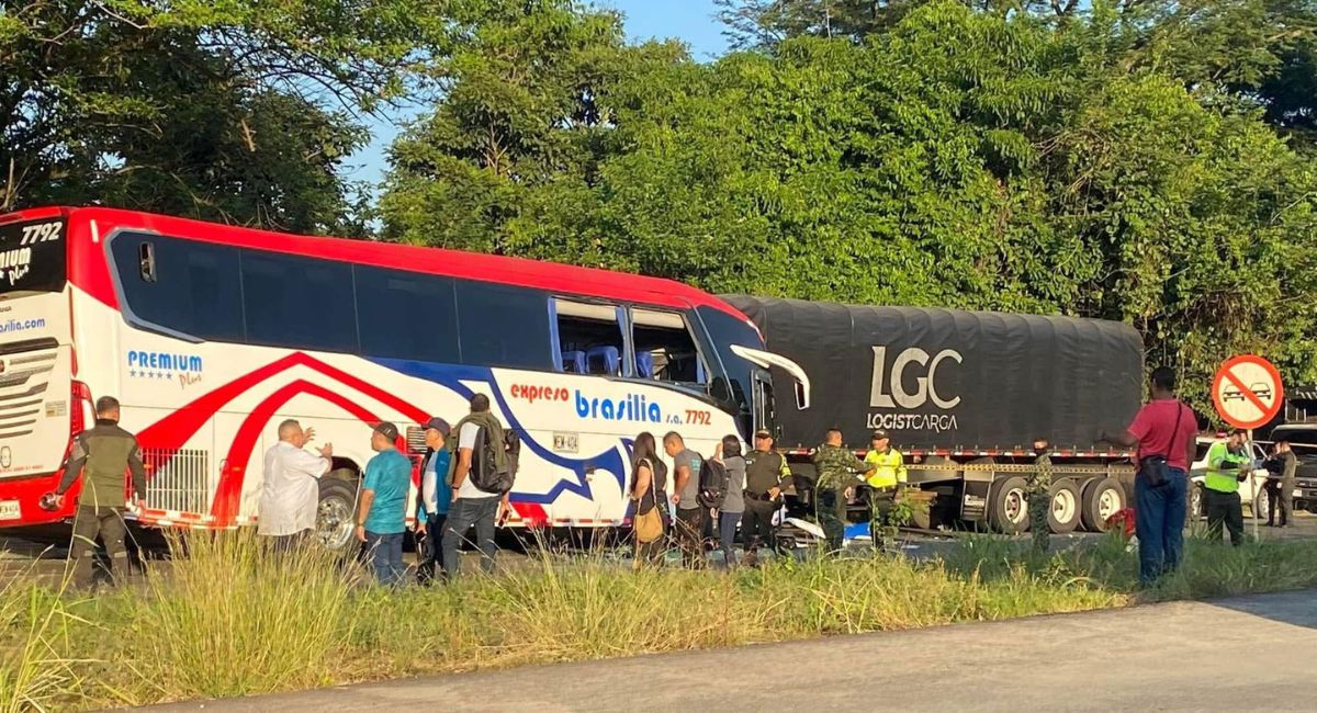 Aunque hasta el momento es poco lo que se conoce, el bus de de transporte público de la empresa Brasilia que cubría la ruta Bucaramanga- Cartagena, por razones que aún se desconocen, colisionó contra la parte trasera del tractocamión.