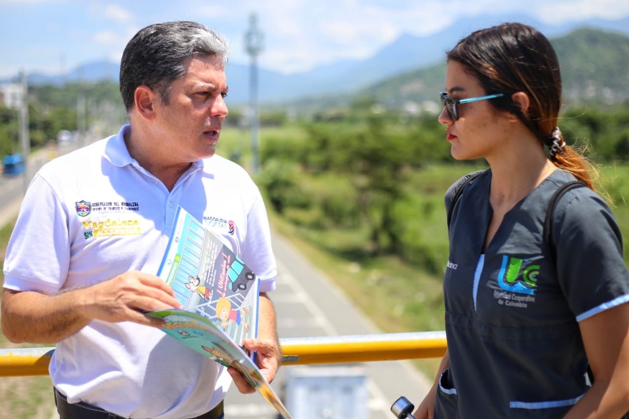 El director de la Oficina de Tránsito Departamental, Rafael Castañeda Amashta, junto a su equipo de trabajo y la Policía de Tránsito Metropolitana de Santa Marta, invitaron a los estudiantes a utilizar el puente para no poner en riesgo sus vidas.