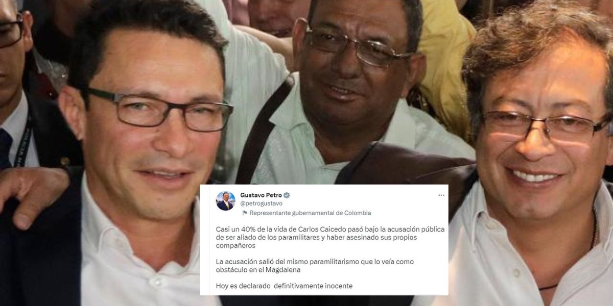 “Casi un 40% de la vida de Carlos Caicedo pasó bajo la acusación pública de ser aliado de los paramilitares y haber asesinado sus propios compañeros. La acusación salió del mismo paramilitarismo que lo veía como obstáculo en el Magdalena. Hoy es declarado definitivamente inocente”, indicó el Jefe de Estado, en respuesta a una imagen en la que el mandatario convocaba a una rueda de prensa en el Casa Magdalena, en Bogotá.