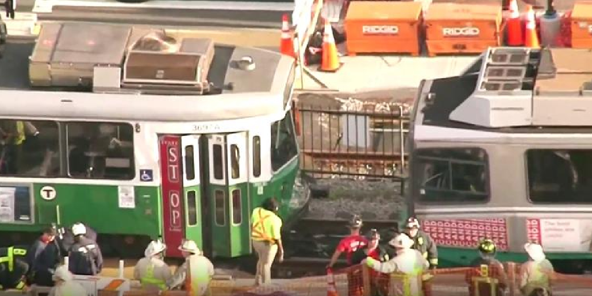 El choque involucró a dos coches de la línea verde, una de las dos rutas que prestan el servicio de trenes ligero en esa ciudad, y ocurrió cerca del Agganis Arena, que se encuentra en el campus de la Universidad de Boston.