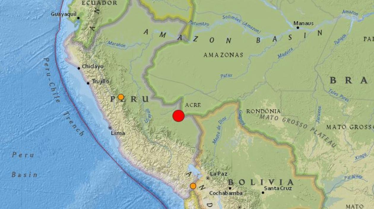 El sismo se produjo a unos 140 kilómetros al oeste de la ciudad peruana de Iberia y unos 250 kilómetros al noroeste de Puerto Maldonado, cerca de la frontera con Brasil y en el corazón de la Amazonía, según la fuente.