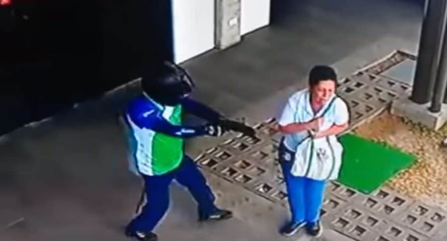 En ese momento, llega otro delincuente y es ahí cuando el guarda, decide acabar con el asalto disparándole a los criminales. Uno por uno fueron cayendo al intentar quitarle la pistola al hombre que se convirtió en el héroe de la anciana a la que querían robar.