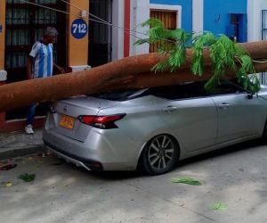 Árbol cayó sobre un vehículo estacionado en el Centro Histórico de Santa Marta