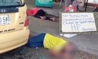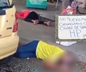 Al lado de los cuerpos dejaron un letrero en el que se lee “no queremos cienagueros en la ciudad de Santa Marta H.P plomo”.