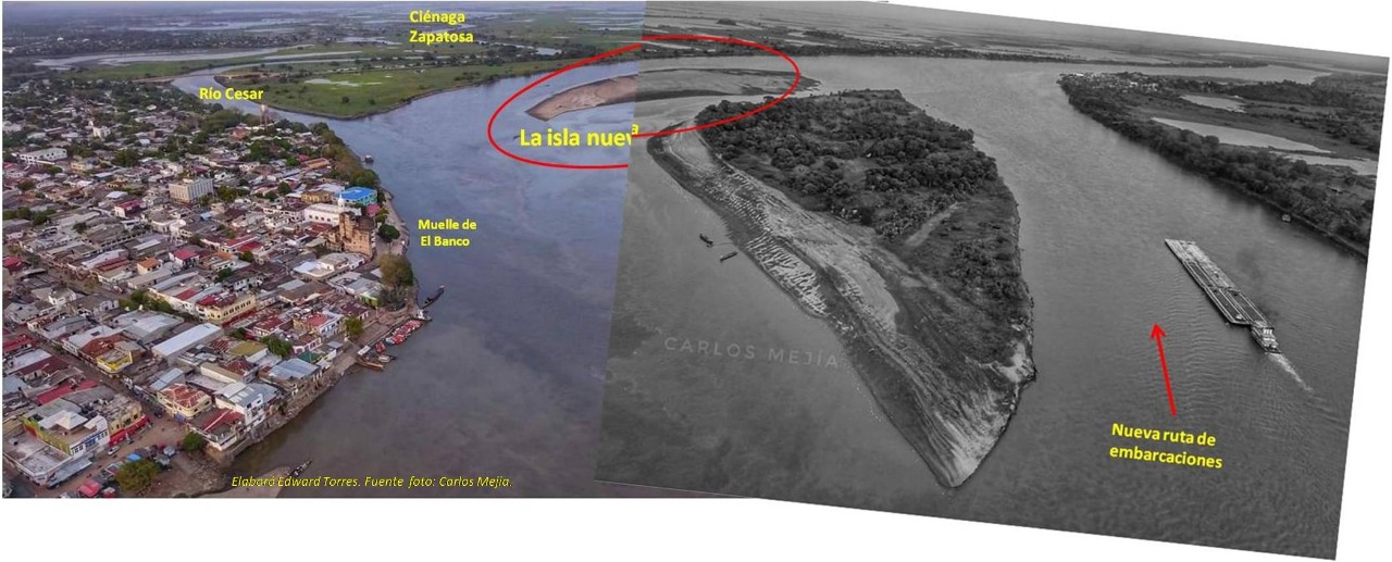 Desde hace unos años esta formación de sedimentos del río viene taponando el paso del agua del río Magdalena por el muelle de El Banco, desviando su curso por el lado contrario, en el Departamento de Bolívar. Igual que las embarcaciones, que hace más de dos años no transitan ni llegan al muelle de El Banco cuyo calado se afectó por efecto de las obras de reparación, contratadas por Cormagdalena hace unos años, que depositaron enormes piedras en su orilla, afectando su profundidad.