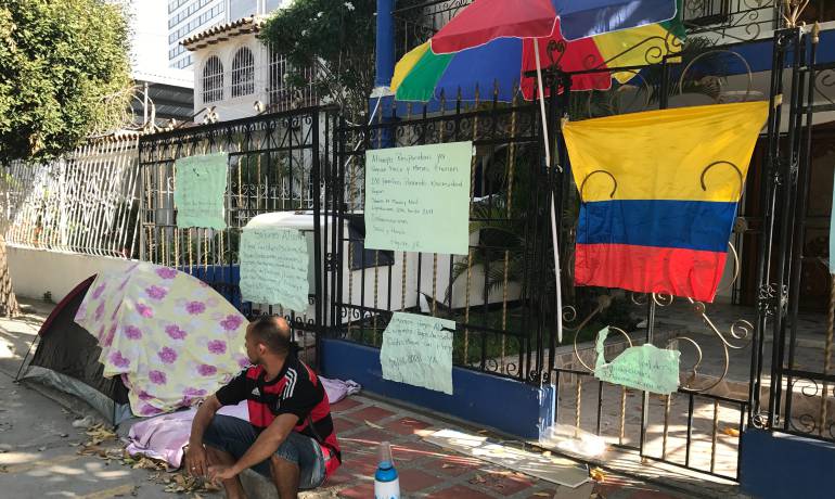Los manifestantes también señalaron que instalaron una carpa donde se quedarán a dormir todas las noches, así mismo llevaron varias pancartas exigiendo cumplimiento, una bandera de Colombia en toda la puerta que impide el paso de los empleados de la bolsa de empleo y un termo de tinto.